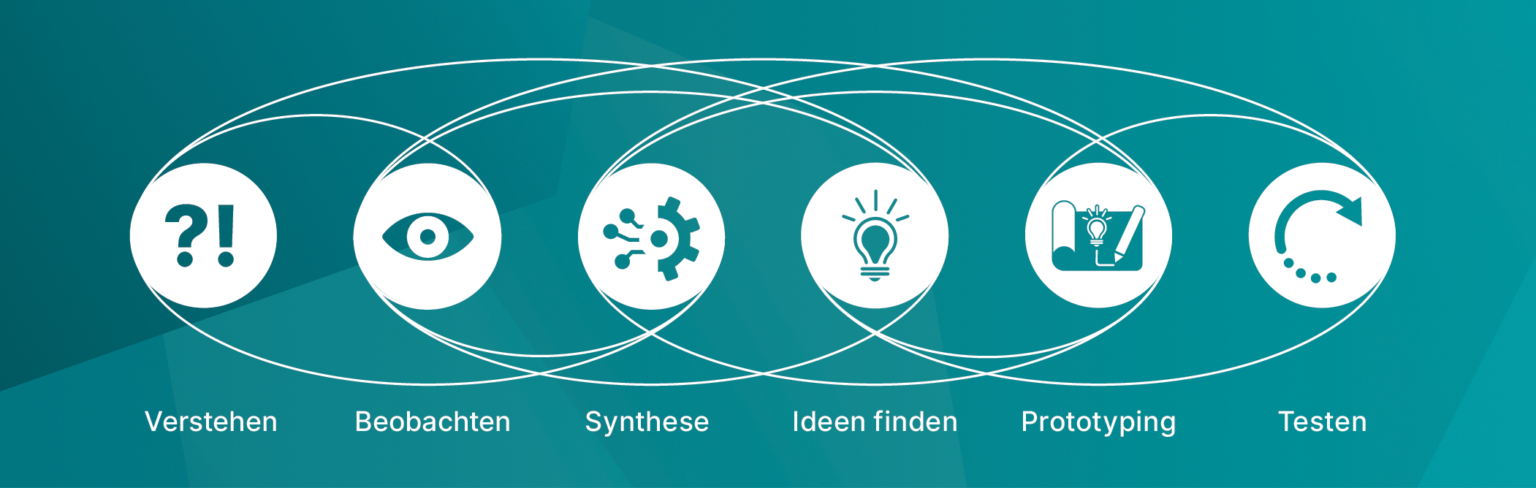 In einem iterativen Prozess durchlaufen wir gemeinsam die Phasen Verstehen, Beobachten, Synthese, Ideenfinden, Prototyping und Testen. Mit Methoden wie Empathy Maps, Personas und Prototypen entwickeln wir fundiert die Lernlösung, die Ihre Anforderungen optimal erfüllt.